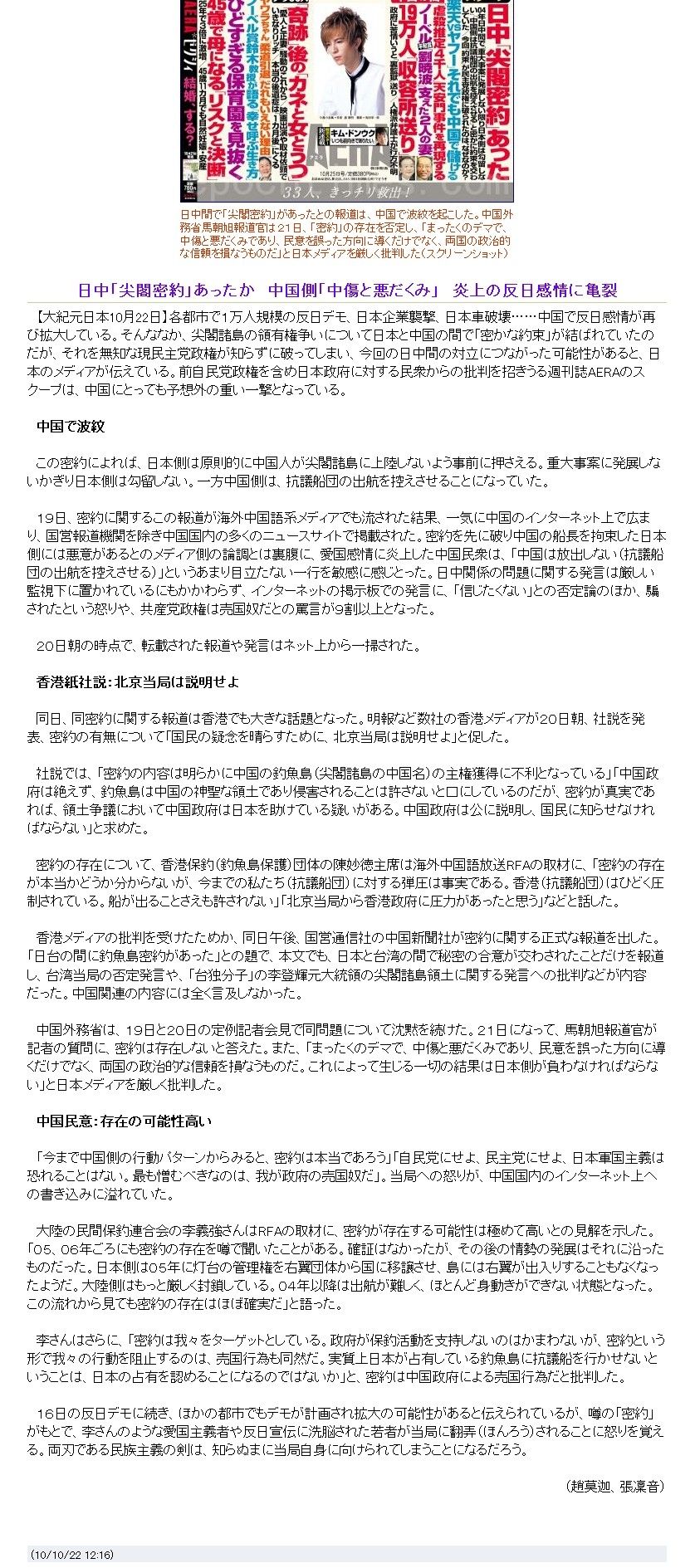 悪いのは「尖閣密約」を破った日本政府だというメッセージになります。