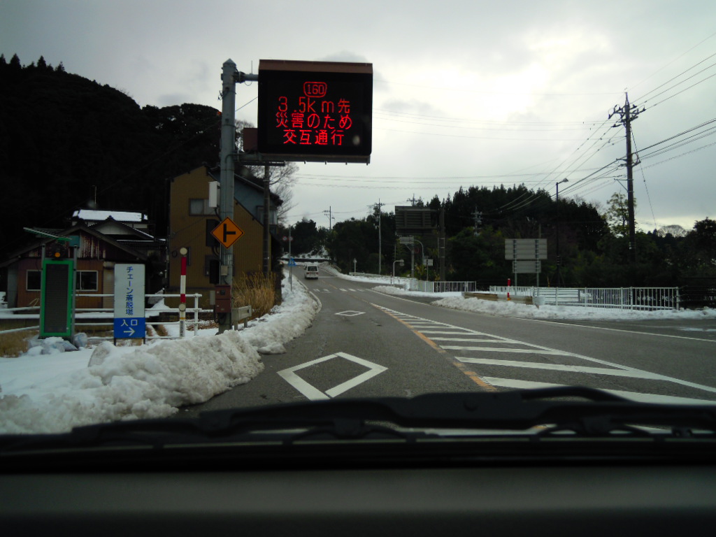 国道160号は1月1日の夜の土砂崩れで片側交互通行です。