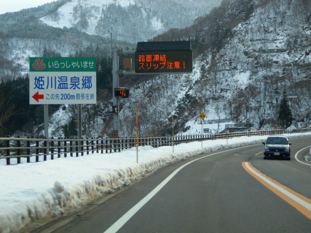 糸魚川から国道148号に入ってからも雪は路面にありませんでした。