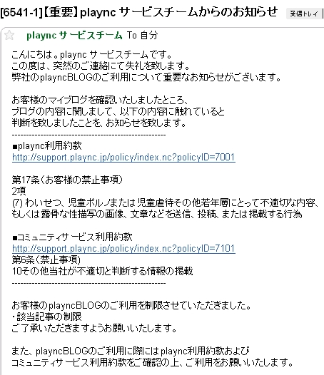 昨日初めて取り上げたらNCJから規約違反の警告メールが届きました。