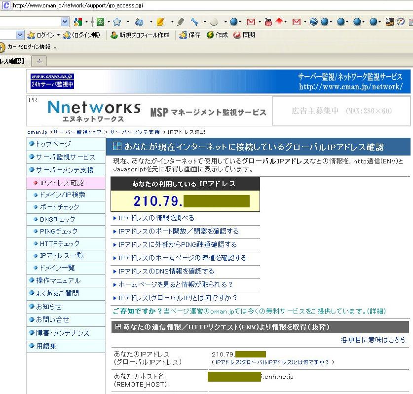 現在使っているグローバルIPアドレスにあることが分かりました。