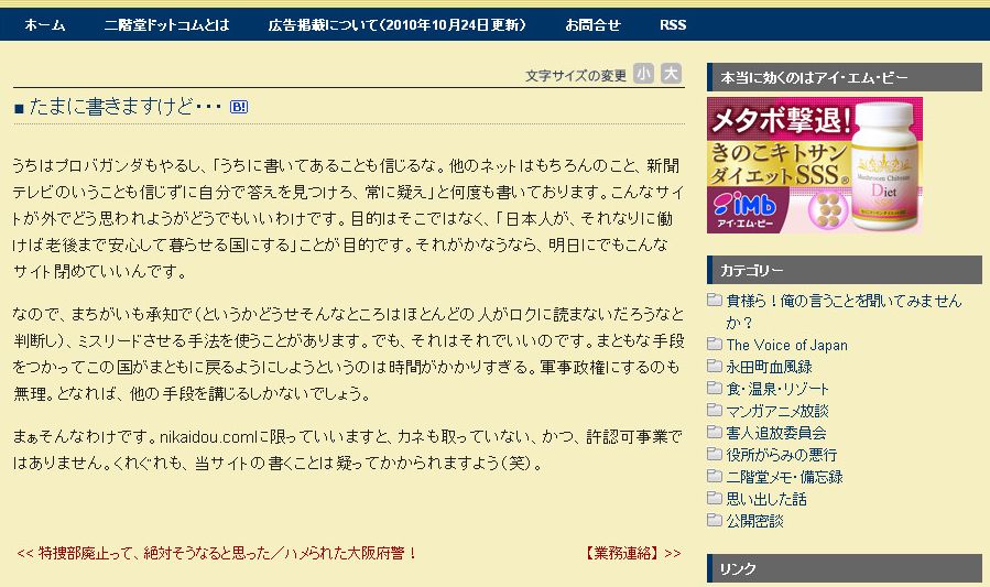 私がちょくちょく見ているサイトに「二階堂ドットコム」があります。