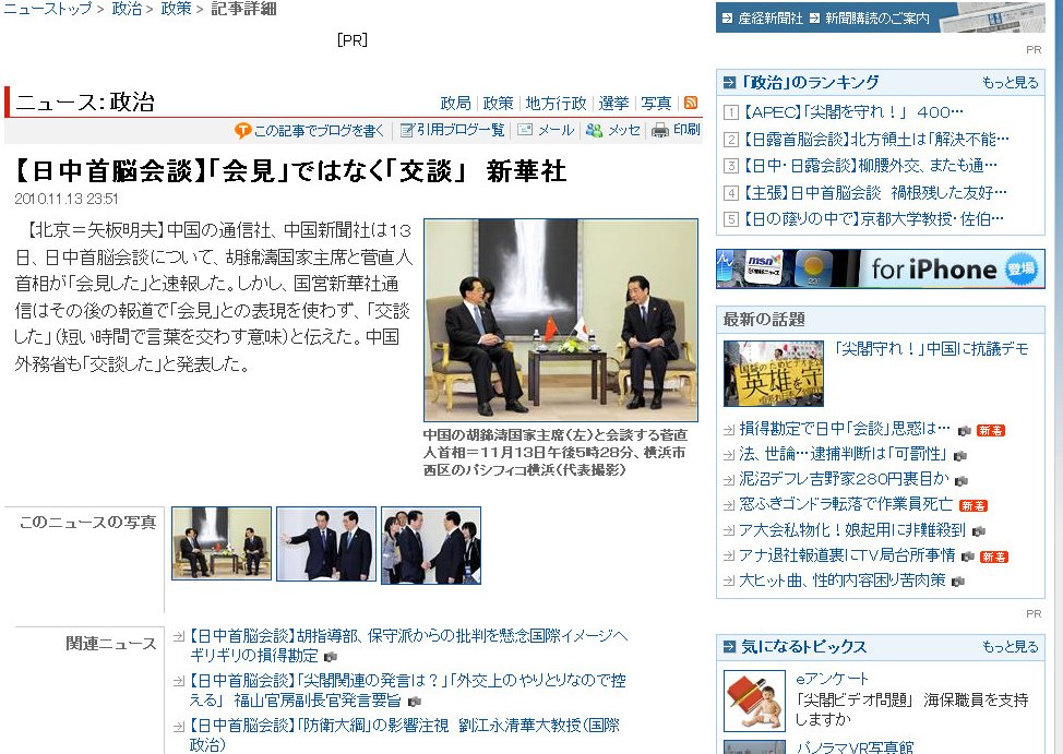 中国政府は菅直人首相のアホが伝染することがよほど怖いようです。