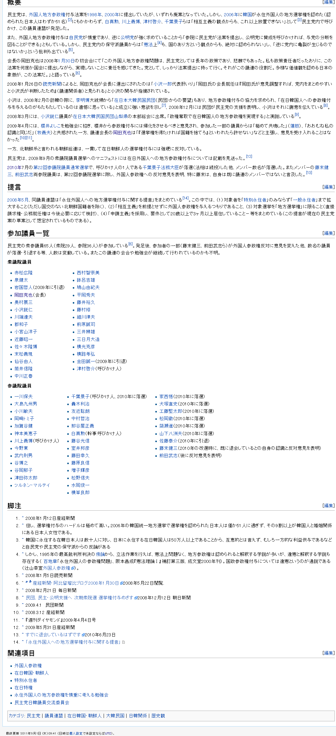 在日韓国人法的地位向上内閣 2011-09-02