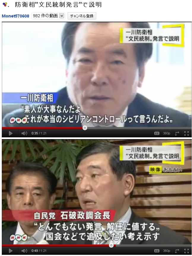 - 2011.09.05 防衛相"文民統制発言"で説明