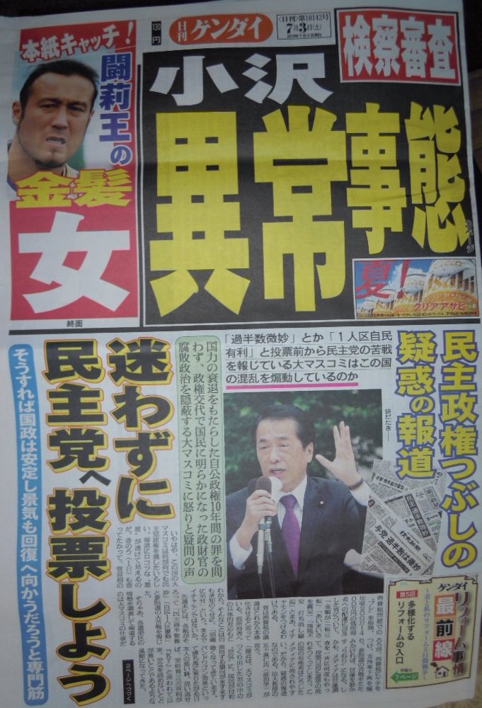小沢一郎を今からよいしょしまくる「日刊現代」というエロとギャンブル大好き馬鹿オヤジご用達の夕刊紙の