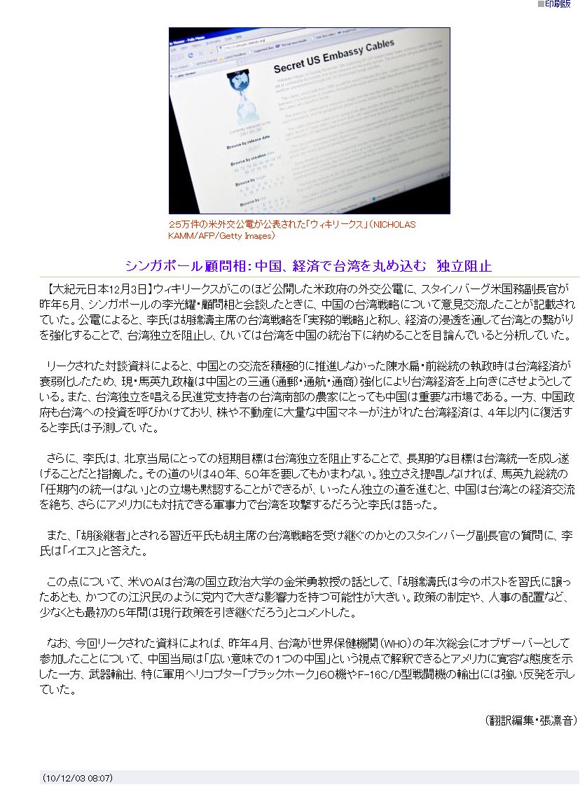 - 2010.11.13 [ 大紀元日本]中国のオンラインマップ 南シナ海を中国領と表記 ベトナムが抗議