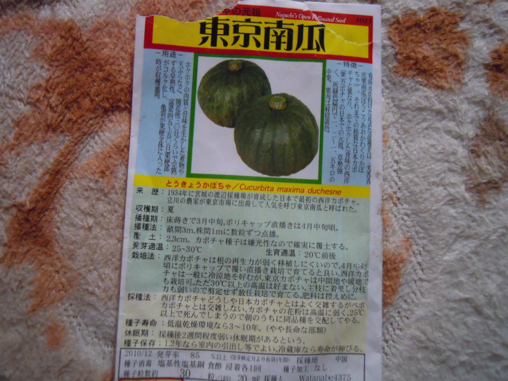 あとそれから野口種苗研究所から東京かぼちゃの種を買って紙容器にタネをまいてました。