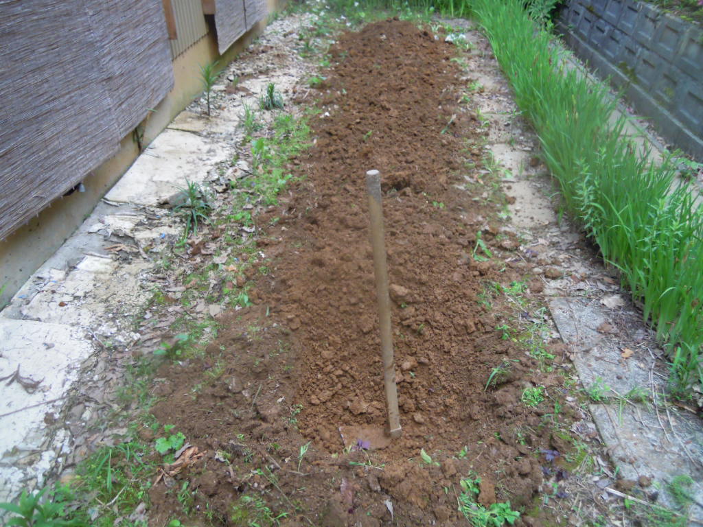 40センチほど掘ってよく混ぜてから、うねを作っておきました。