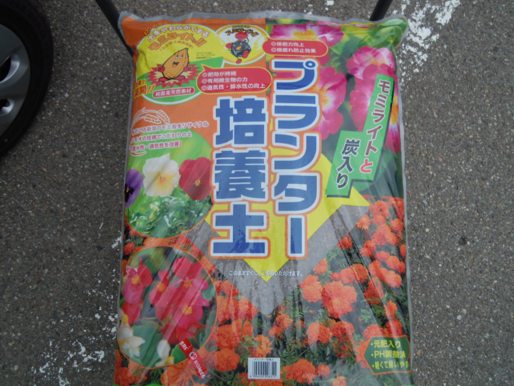ホームセンターで緑色のマルチとプランター用の培養土20キロを2袋買ってきました。