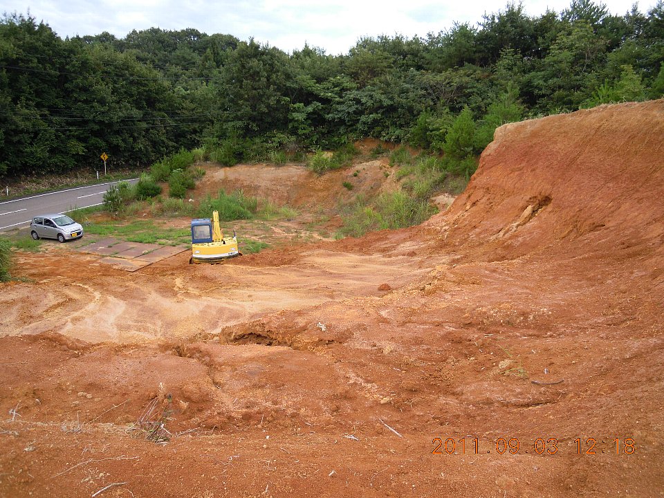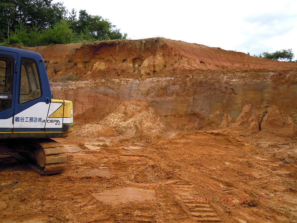 山の地表面ではなくて下の方の地層の赤土です。