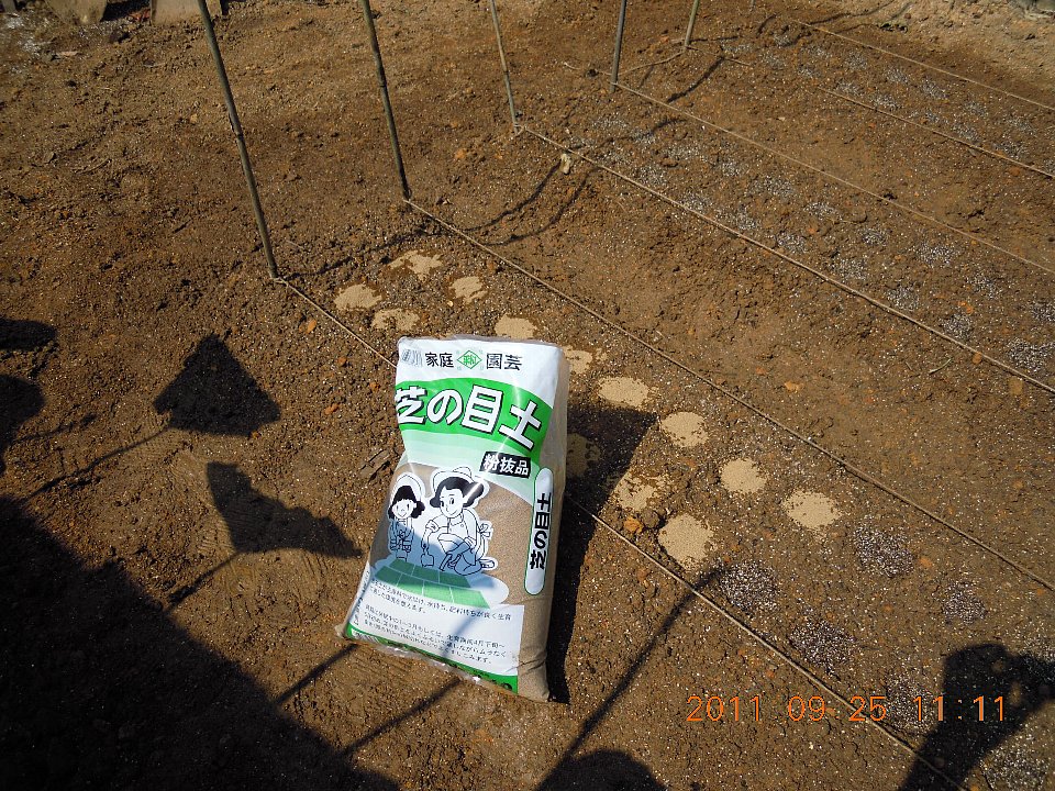 種を蒔いた上にかける土は「芝の目土」を使いました。