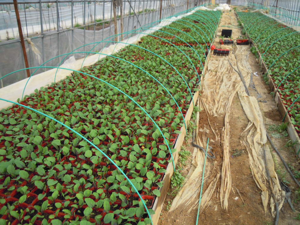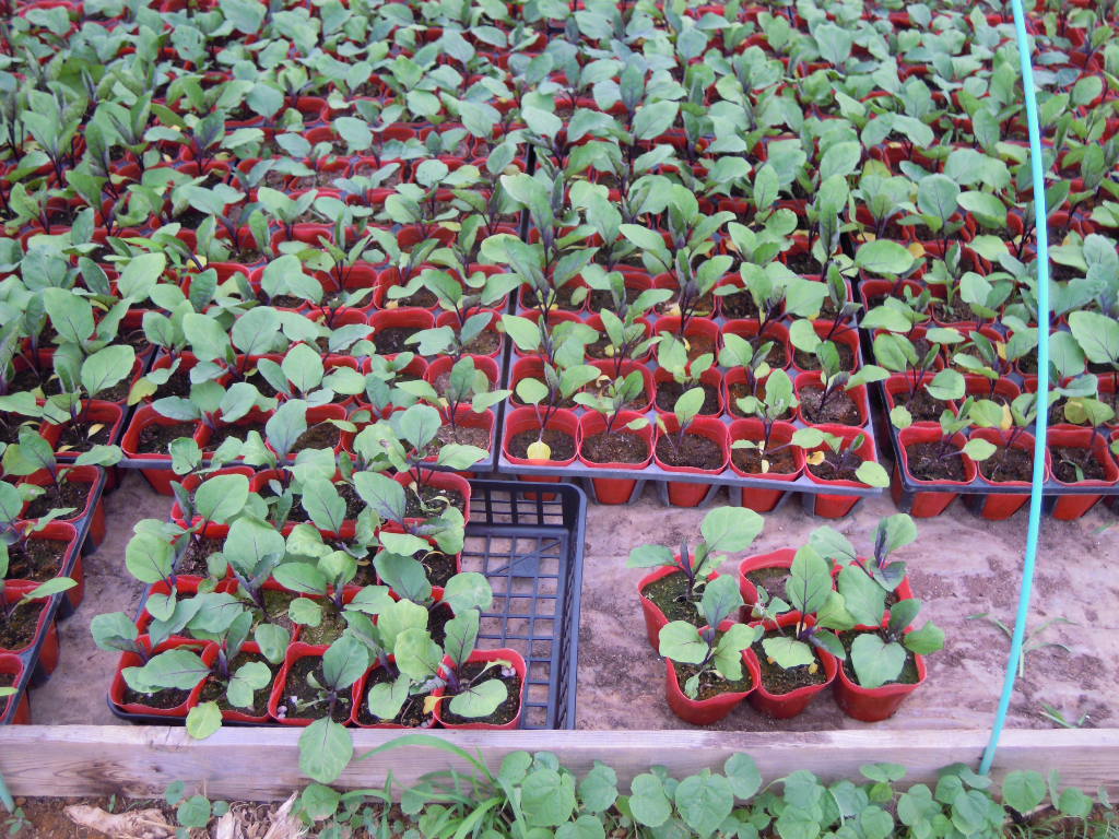 大きい苗の入ったトレーはすぐに出荷できるように