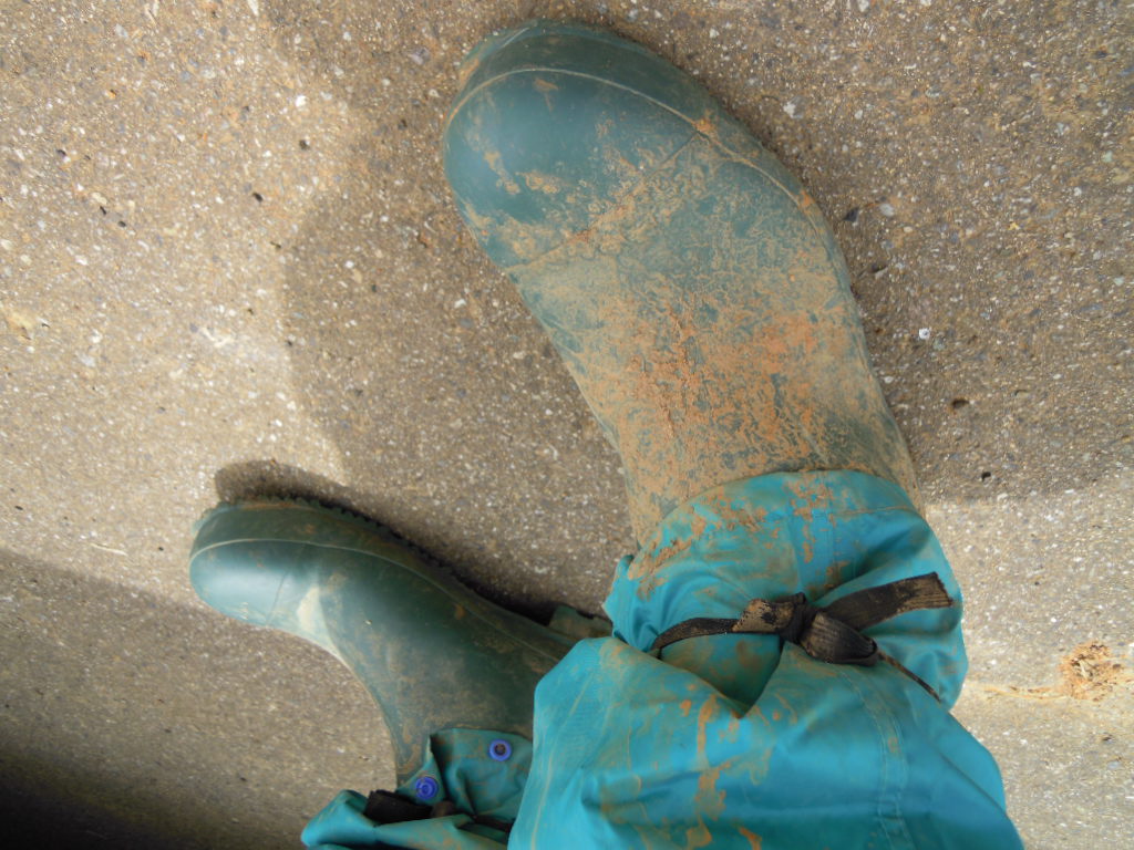 朝方雨が降って土が柔らかかったので雨具のズボンをはいて作業。