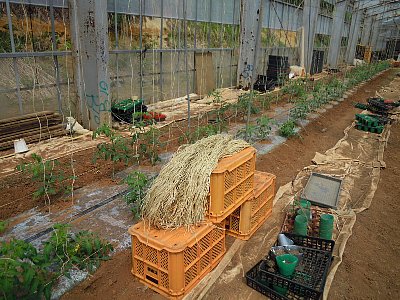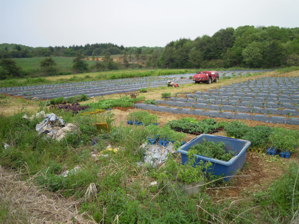 5月19日(木)畑でナスなどの野菜苗の定植作業
