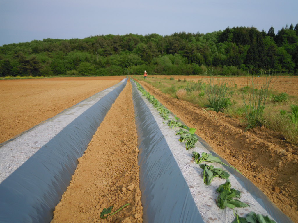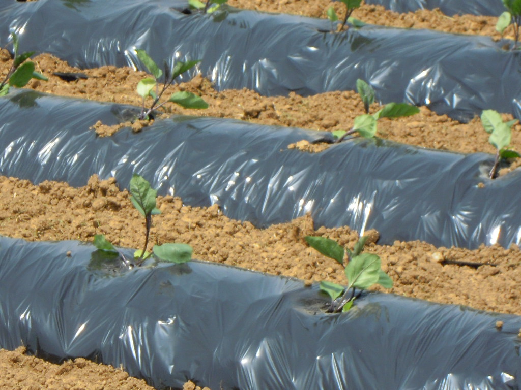それからマルチをしているから苗の葉っぱは黒いビニールにのせないようにとも