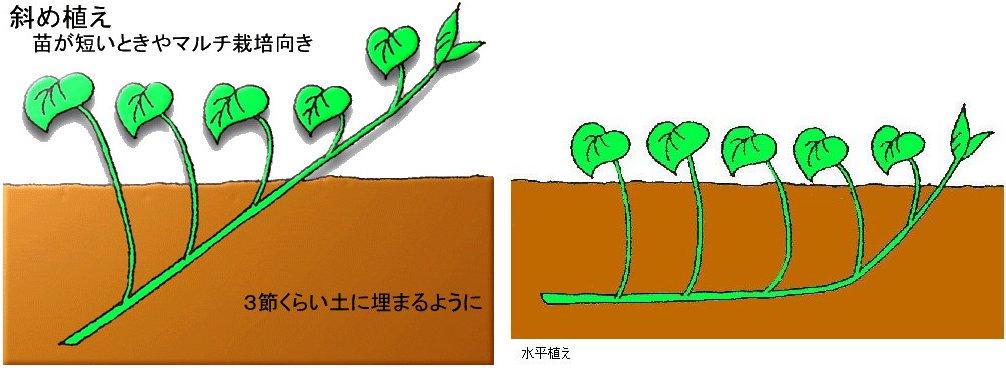 土をかぶせるときは斜めに植えているから寝かせた状態でかけてくださいといわれました。