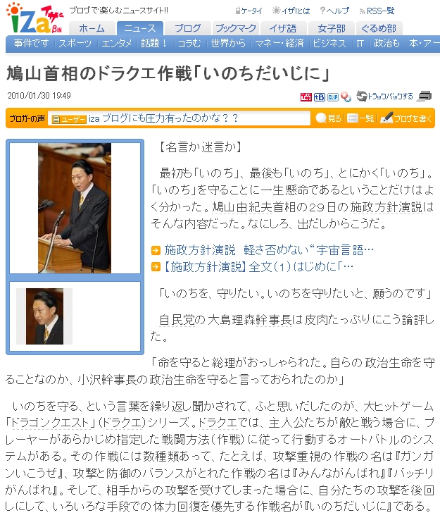 そういえば年初の所信表明演説の「命を守りたい!」は