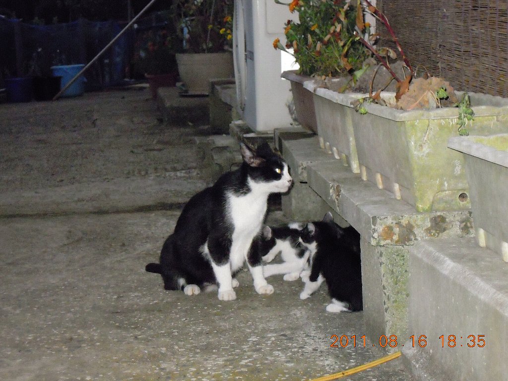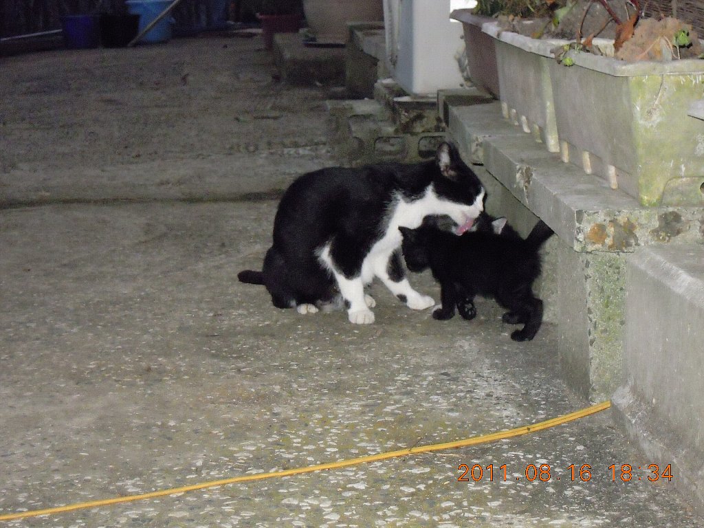 親のオス猫はたぶんいつもいっしょにいた白黒だと思います。