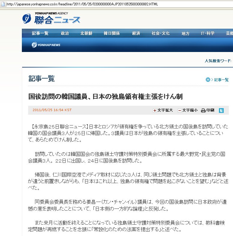 - 2011.05.31 竹島問題は国際司法裁判所で