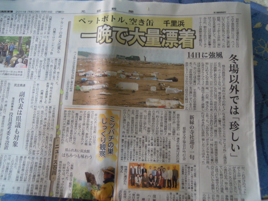 北国新聞の記事にはどこから流れ着いたのはなぞのままになってました。
