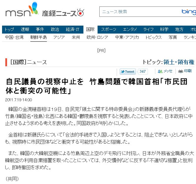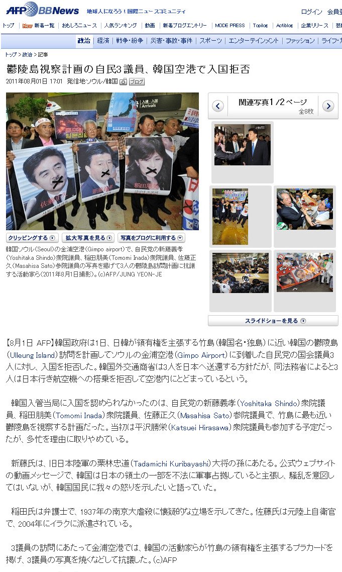 すぐにこれは竹島の領有問題が日本の世間一般に知れ渡った