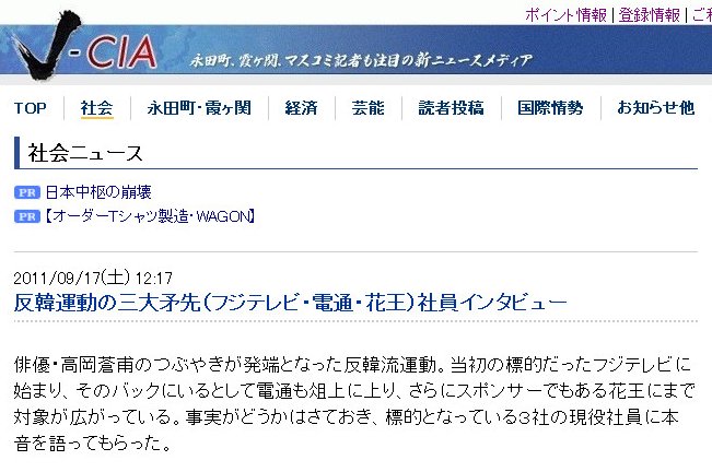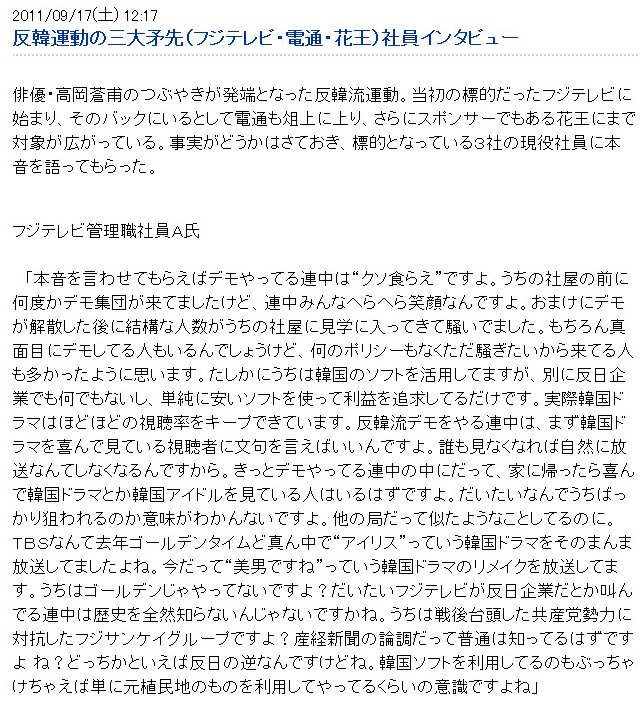 J-CIA 反韓運動の三大矛先(フジテレビ・電通・花王)社員インタビュー 2011/09/17(土)