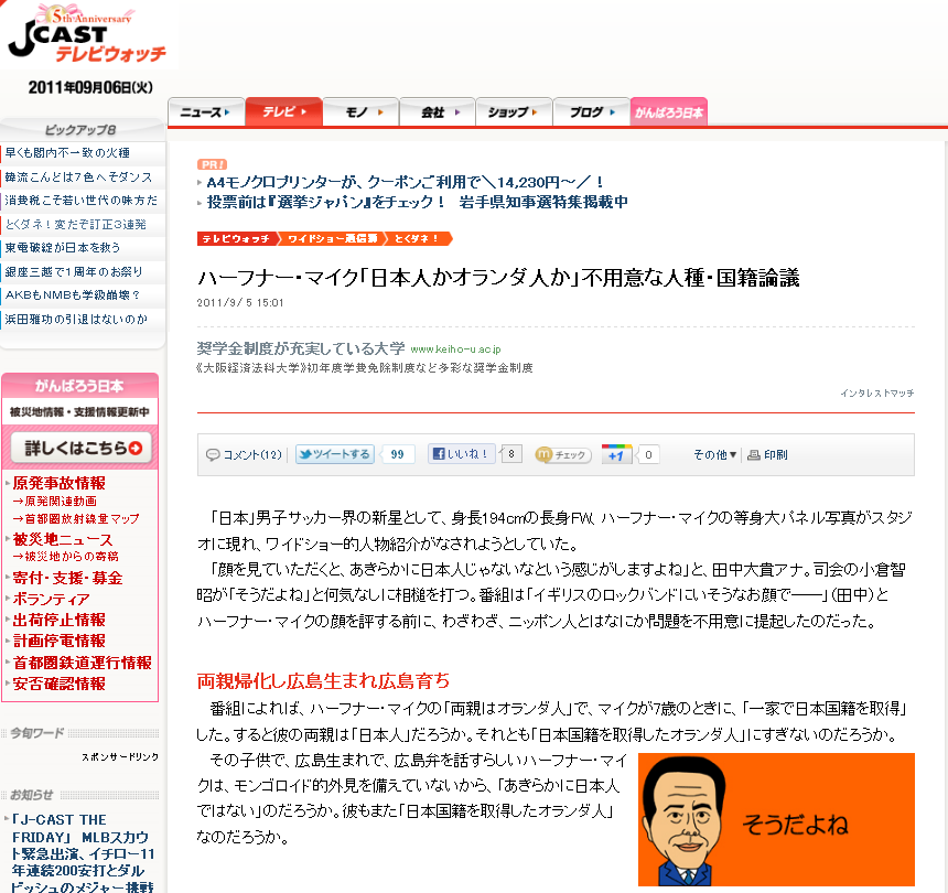 ハーフナー・マイク「日本人かオランダ人か」不用意な人種・国籍論議
