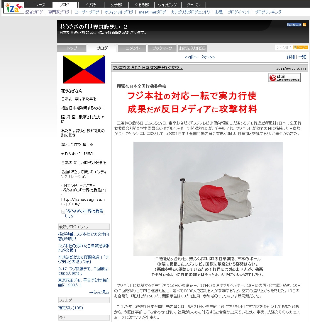 - 2011.09.21 フジテレビの掲揚したぼろぼろの国旗は