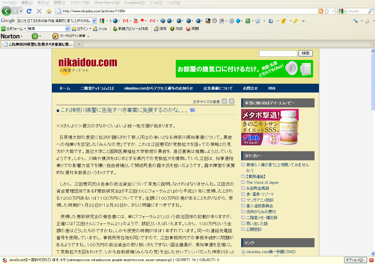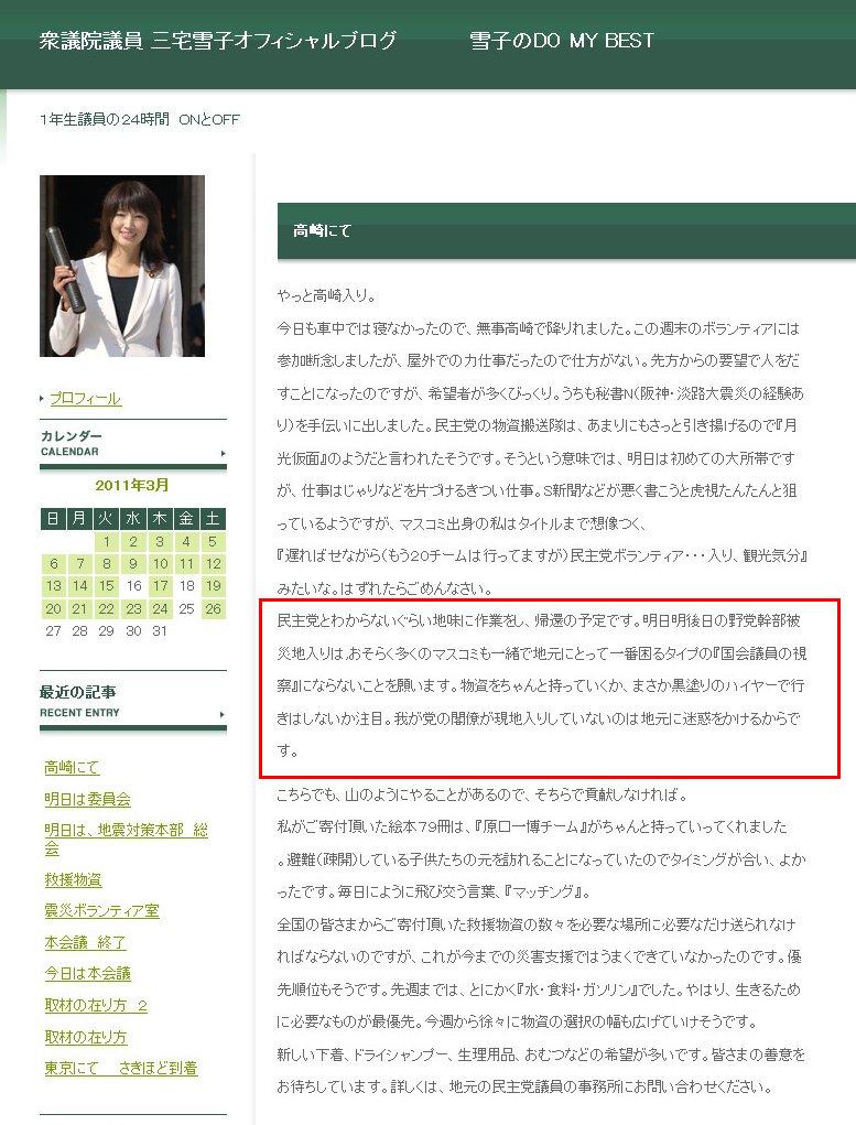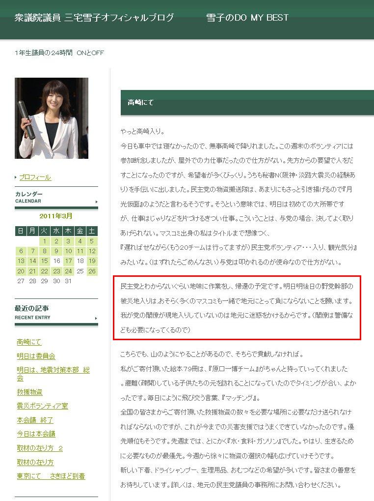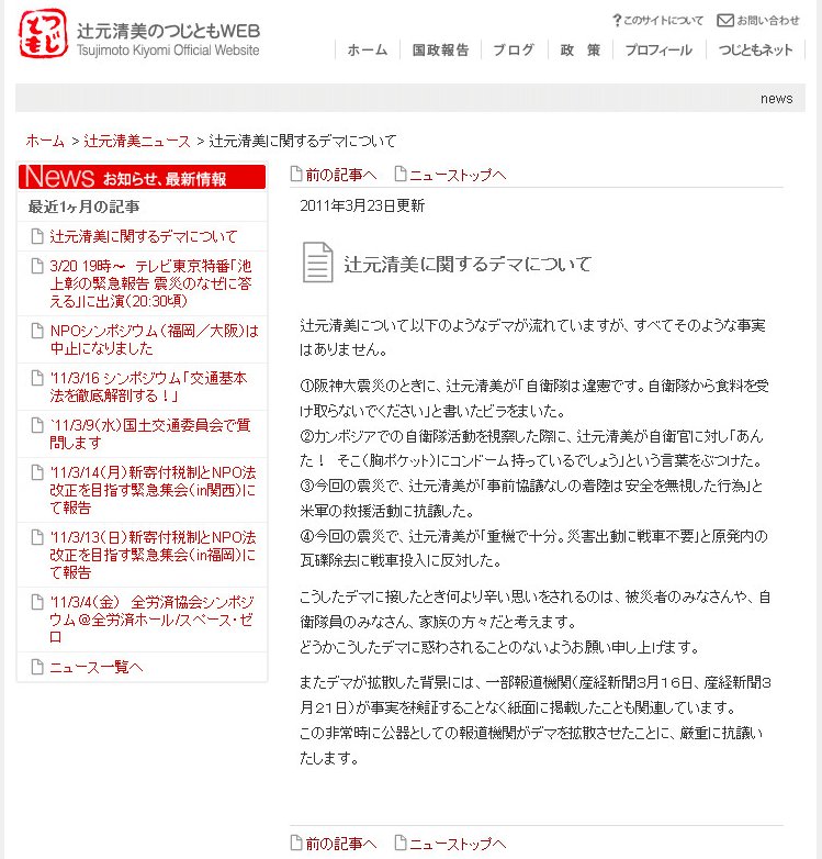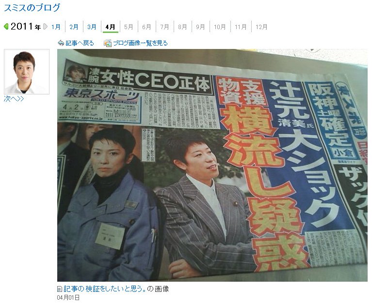 右はスミスのブログ「 2011-03-30 辻元清美らの悪行!裏がとれたぞ!」