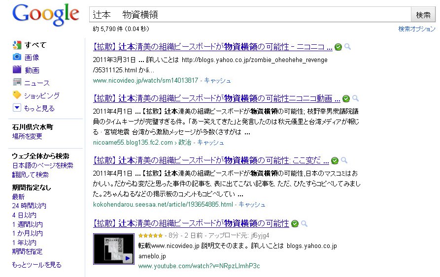 「辻本 物資横領」で検索するとすでに5000件を超える人気ぶりです。