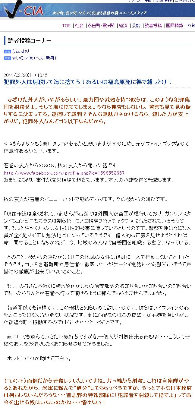 すでに被災現場のあちたこちらで略奪やレイプなど犯罪j行為が