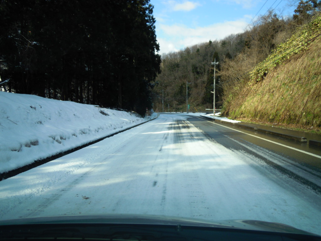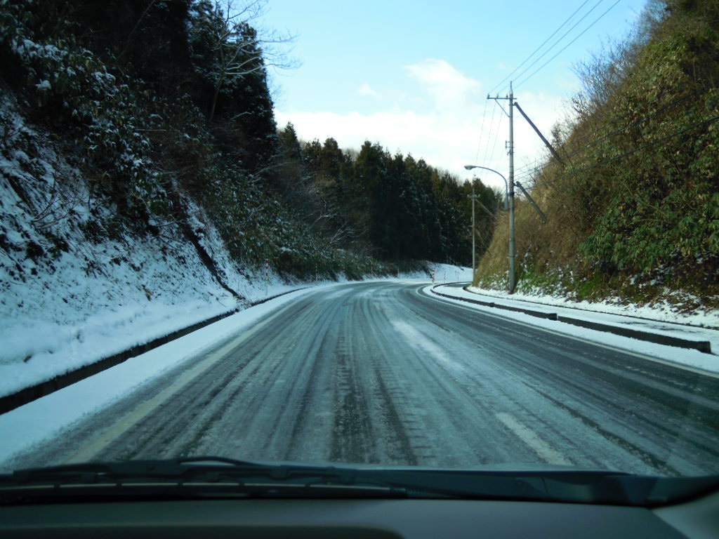 まだ寒い日には部分的に路面が凍っているので油断出きません。