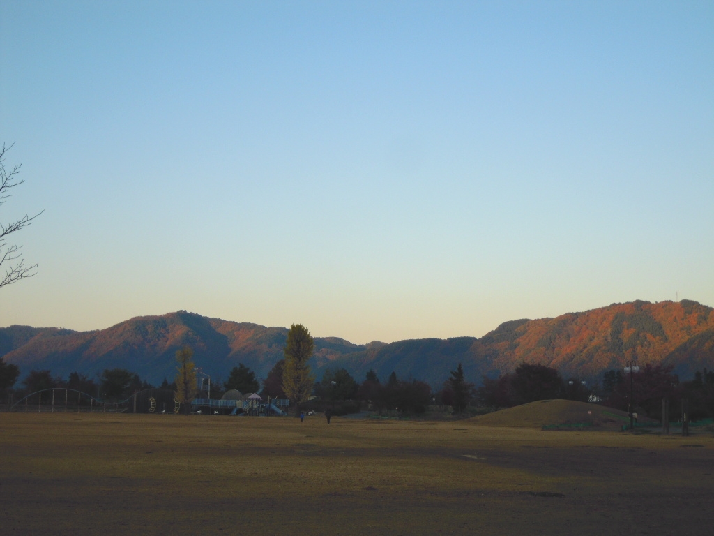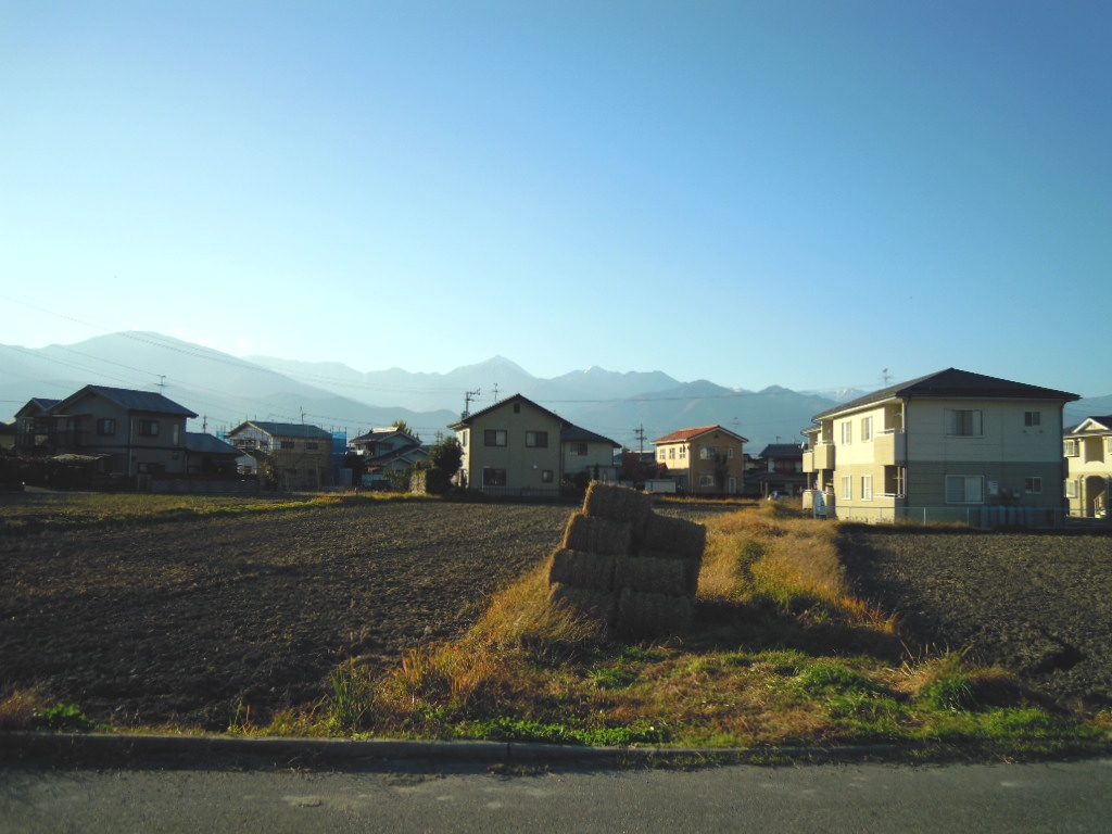 右の写真は豊科南部総合公園で大町市、糸魚川方向を撮った画像(どちらも午後4時頃)。
