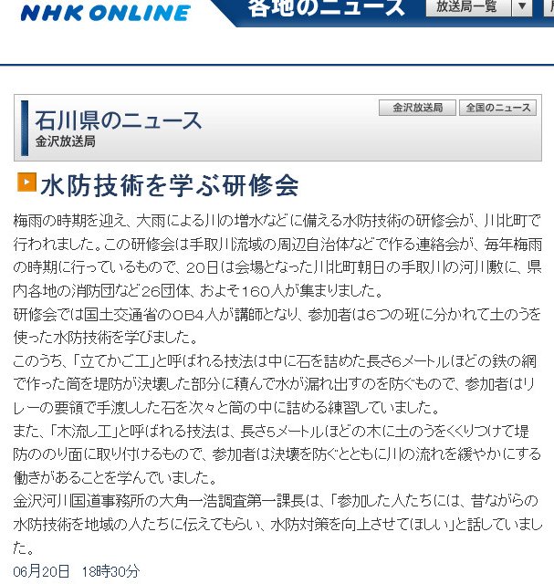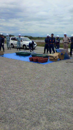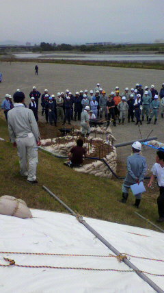 堤防が決壊したという想定でのいろいろな工法を教わりました。