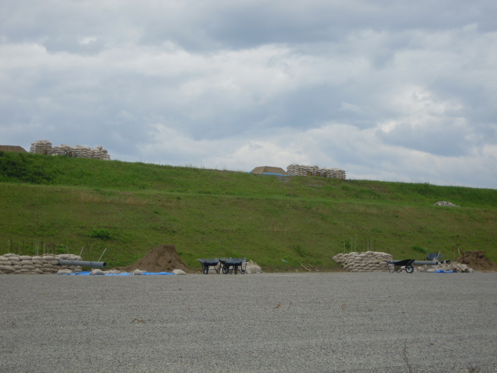 上から十分転圧しながら土のうを積み上げていけばよかったと思います。