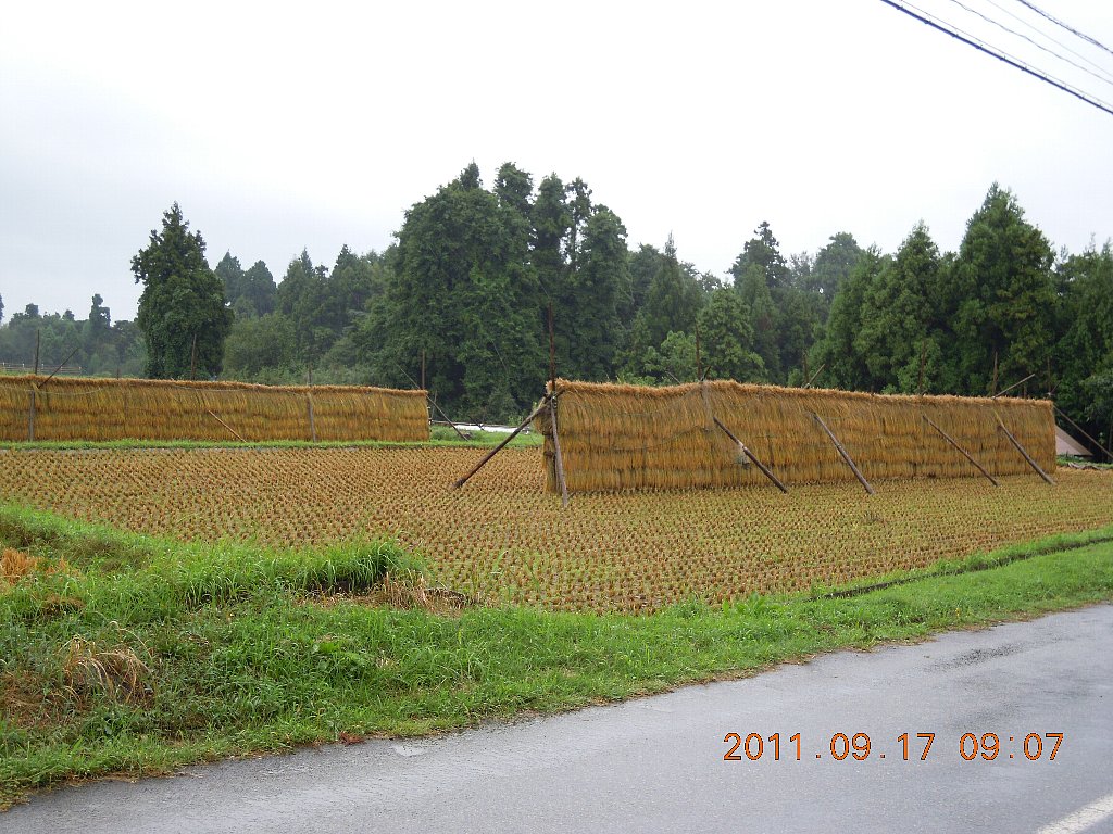 こちらは「はざ」で天日干しをする「はざかけ米」です。