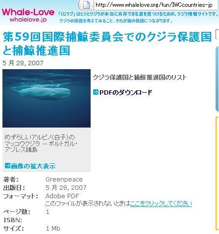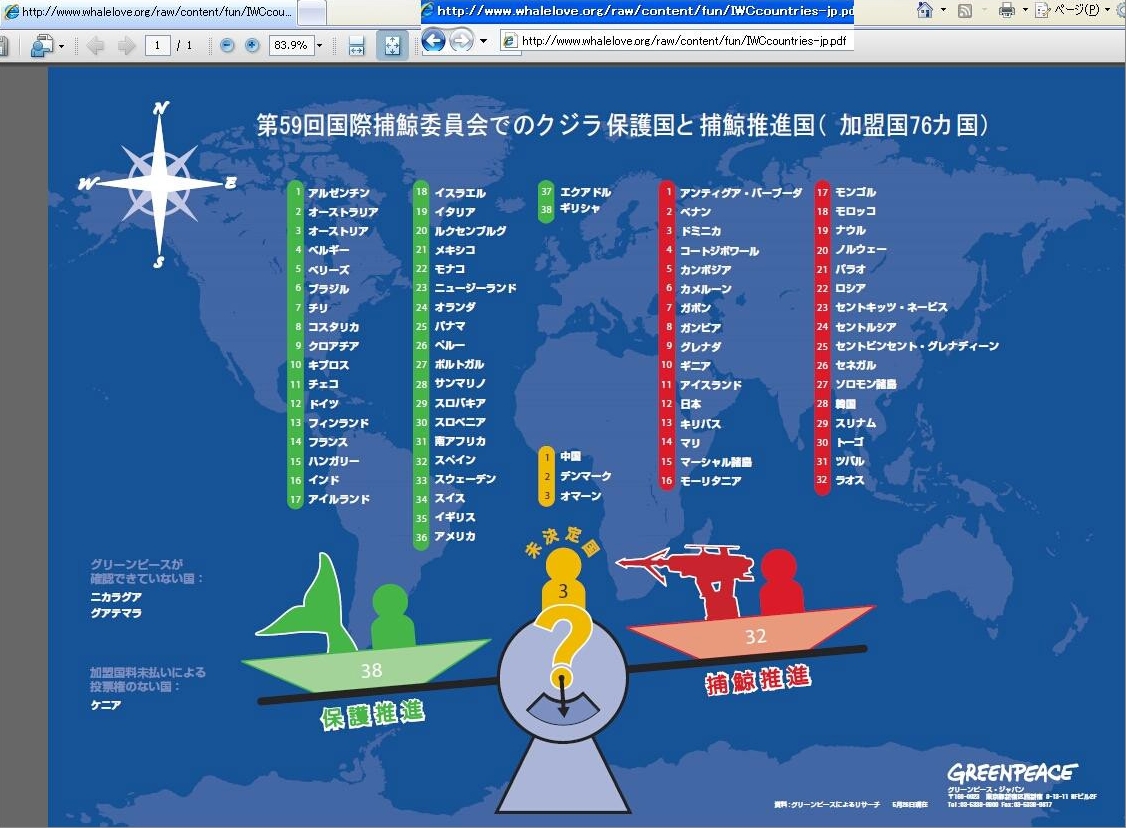 第59回国際捕鯨委員会でのクジラ保護国と捕鯨推進国 から行けます。