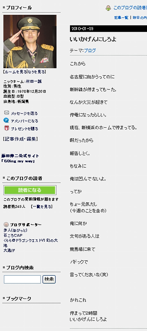 [ いいかげんにしろよ 2010-01-29 村田一誠オフィシャルブログ]