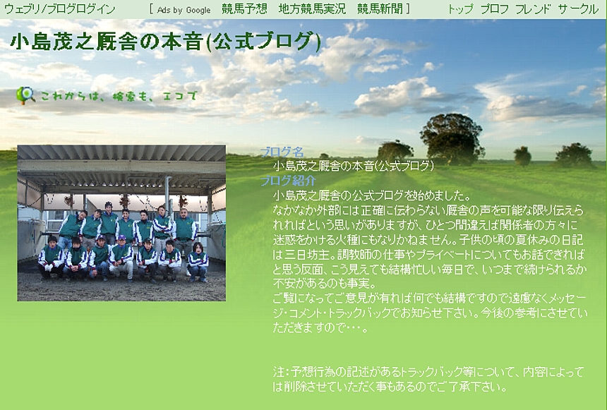 4・ 小島茂之厩舎の本音(公式ブログ)