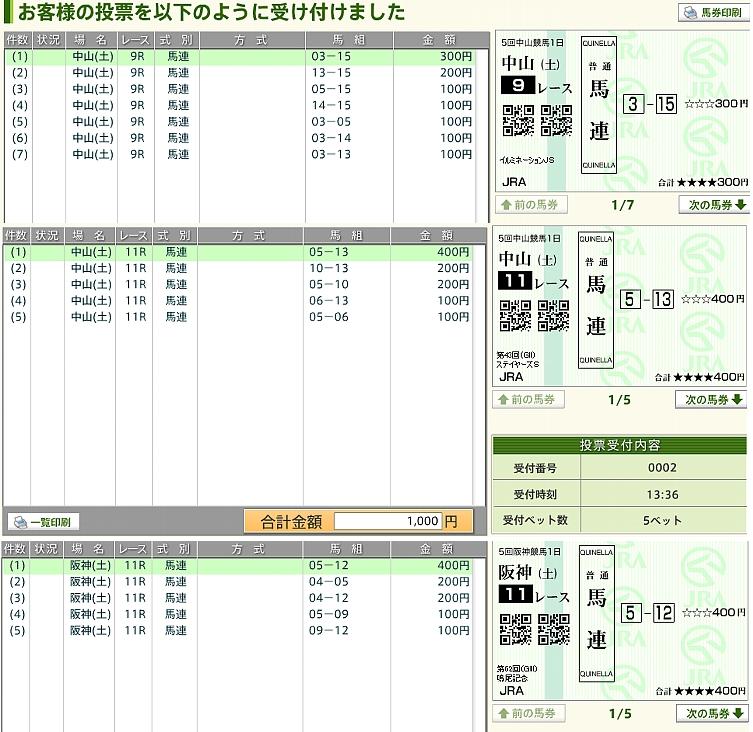 阪神11R ⑤ スマートギア 2着 ヒモ抜け