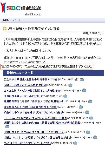 2009年2月4日の長野県のローカルTV局である信越放送が下のような報道をしました。
