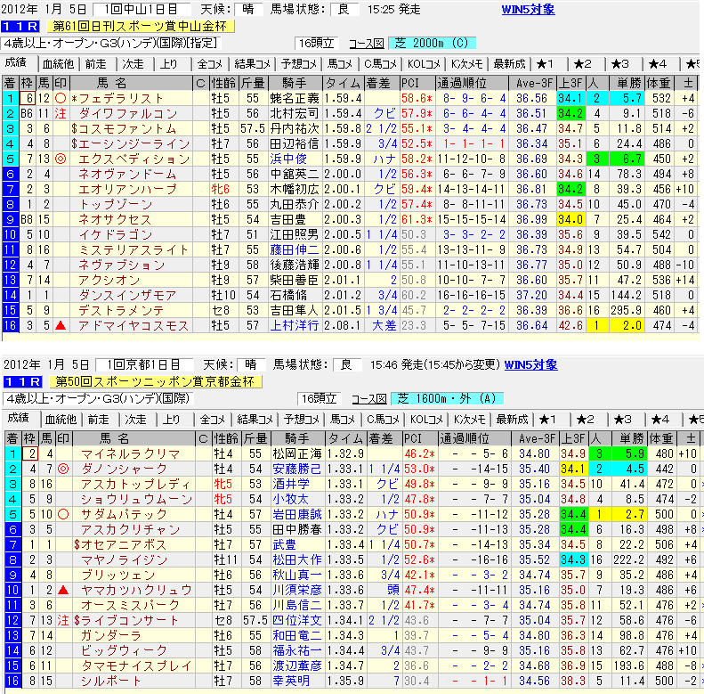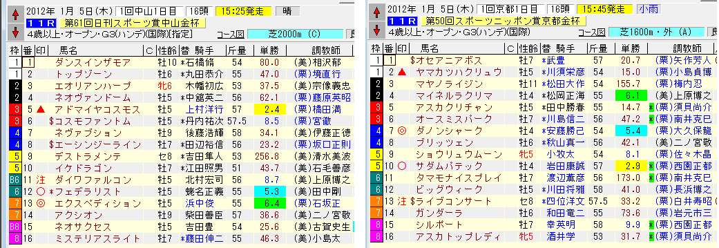 10Rと11Rのうちの芝の1600以上で