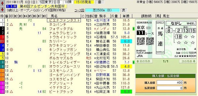 東京11R アルゼンチン共和国杯はキングトップガンを狙います。