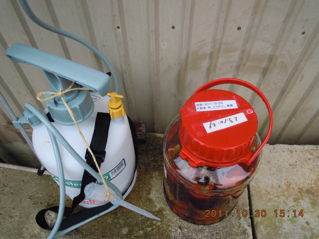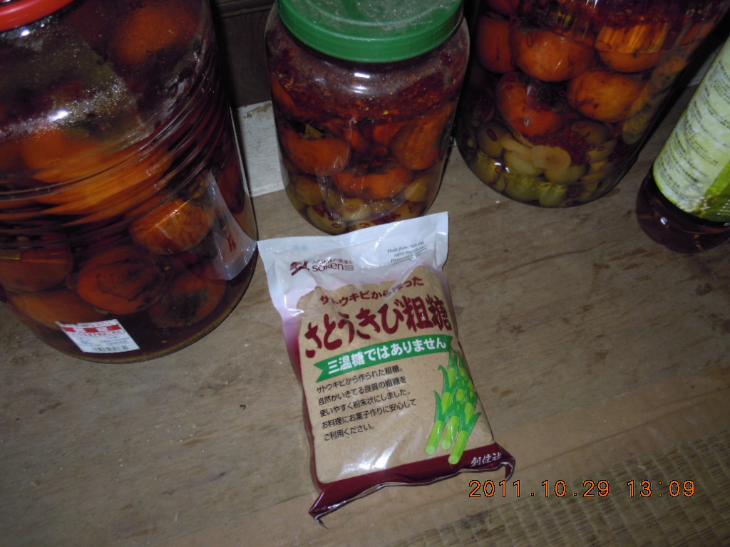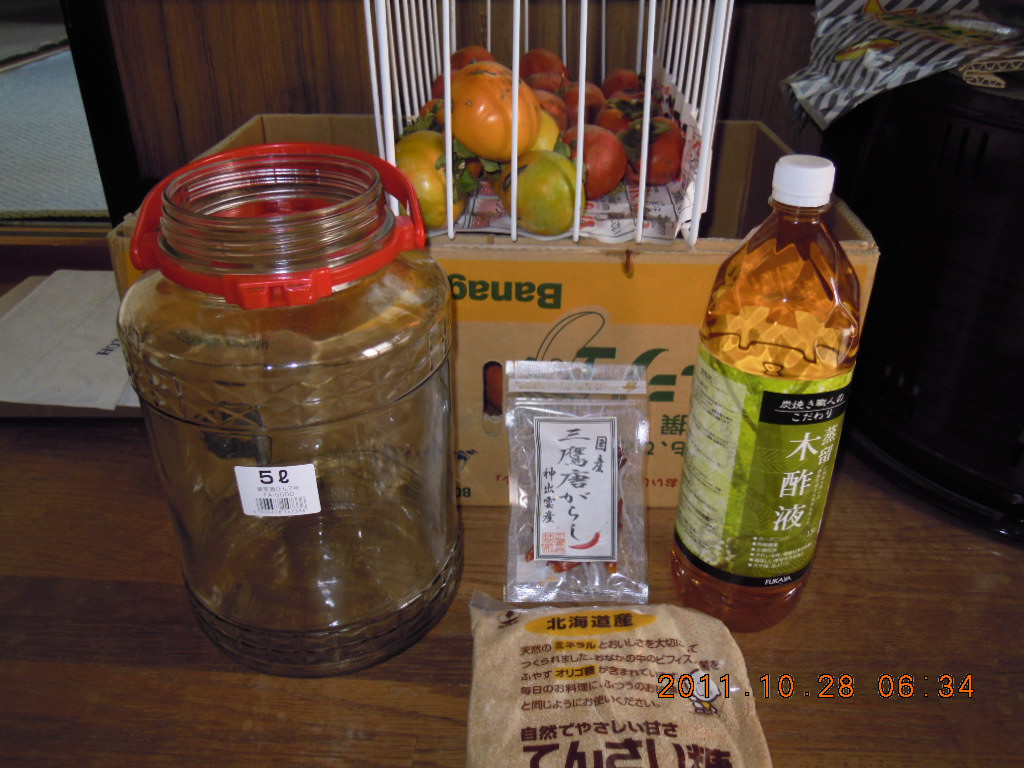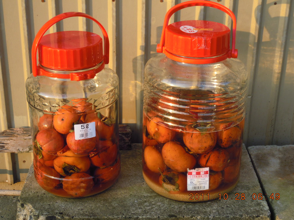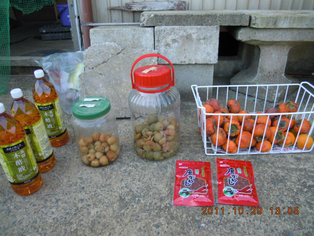 「梅酒で使った梅、柿(甘柿)、とうがらし、木酸液」に