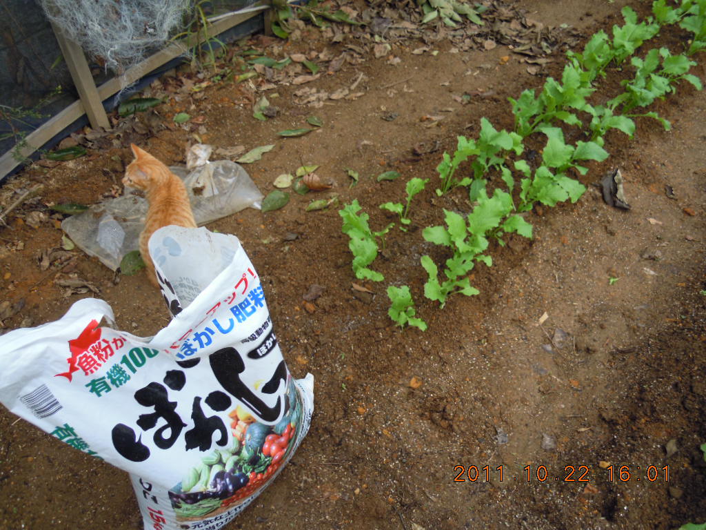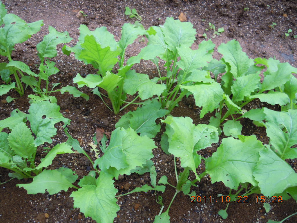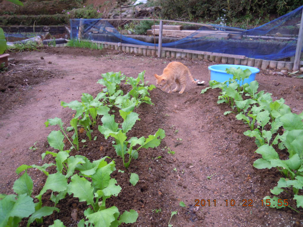 それから1回目のときに間引いたコカブの苗は畝のそばに