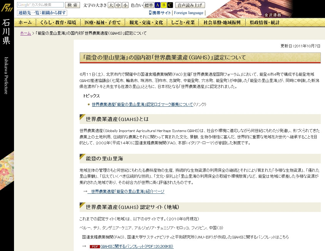 「里山里海の保全活動が評価された」部分が大きいそうなので