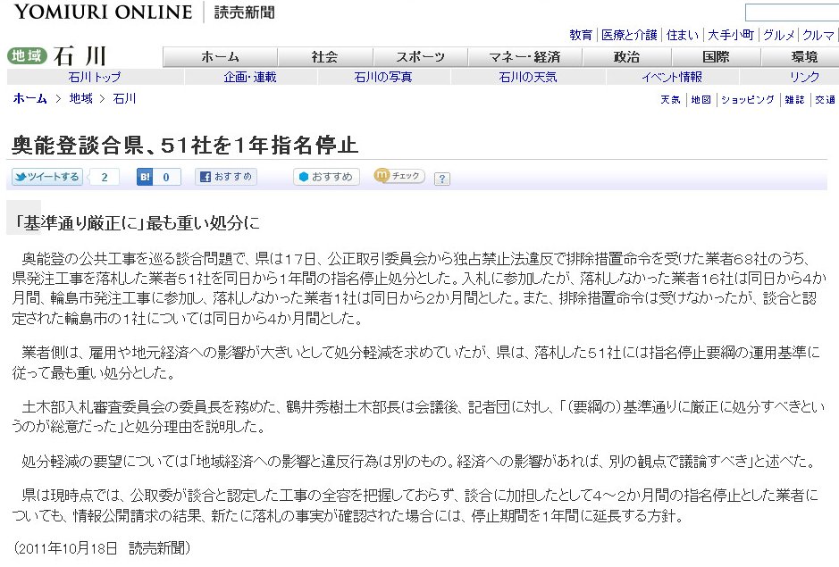 建設業界はこの間の談合認定で元気がないし、