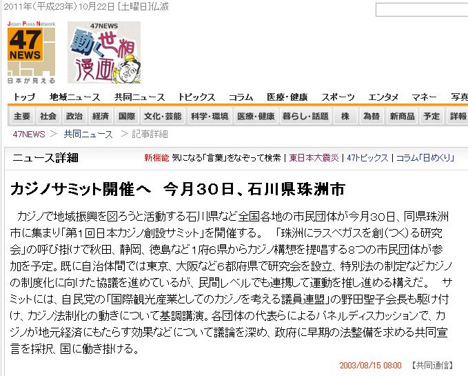 2000年頃から続いている珠洲にカジノを作る動きはどうなるんでしょうね?