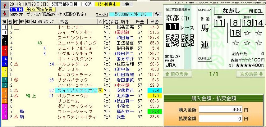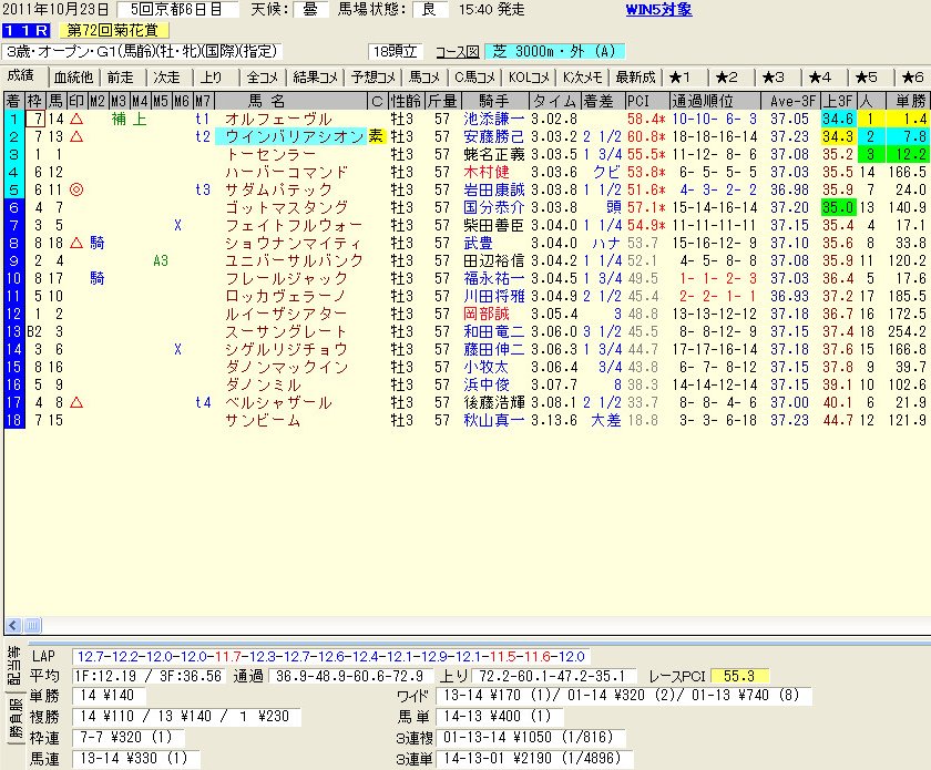 菊花賞は順当な結果でした。